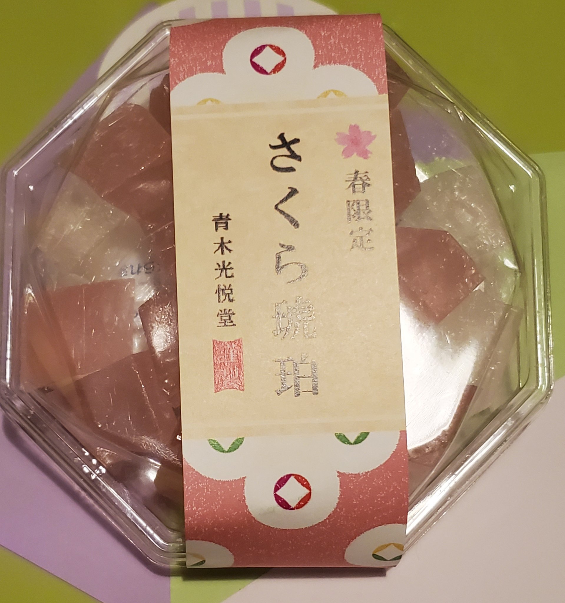 成城石井で琥珀糖があった! 開けると、さくらの優しい甘い香りがする🌸 白とピンクで味が違う(*´ー`*)♥️